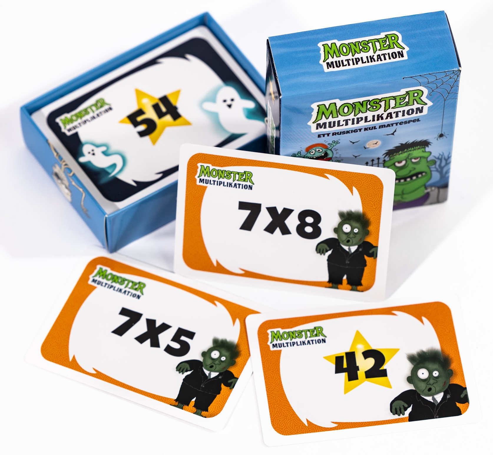 Att lära sig multiplikationstabellen kan vara svårt, men som tur är vill monstren gärna hjälpa till. Det finns ingenting som monster älskar mer än multiplikation. Svara rätt på multiplikationstalen och samla poäng. De 3 olika spelvarianterna är snabba för att uppmuntra till lite övning varje dag. Men det går också bra att använda korten för att hitta på nya regler till ett alldeles eget multiplikationsspel.